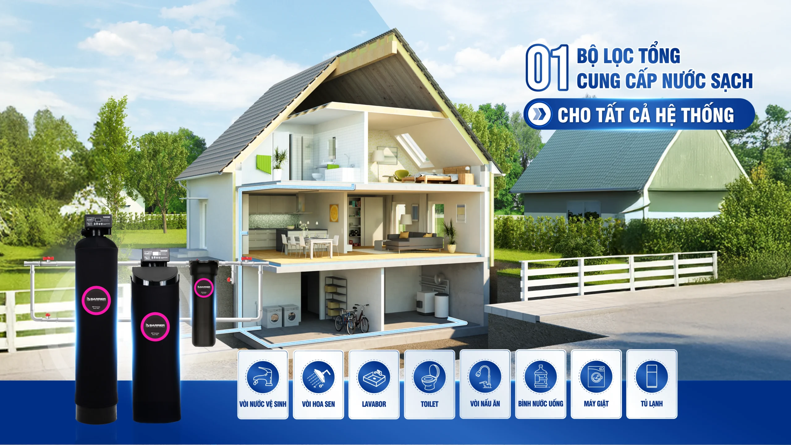 Hệ thống lọc tổng đầu nguồn Barrier City Pro Hero Plus mang đến giải pháp xử lý nước toàn diện cho gia đình: